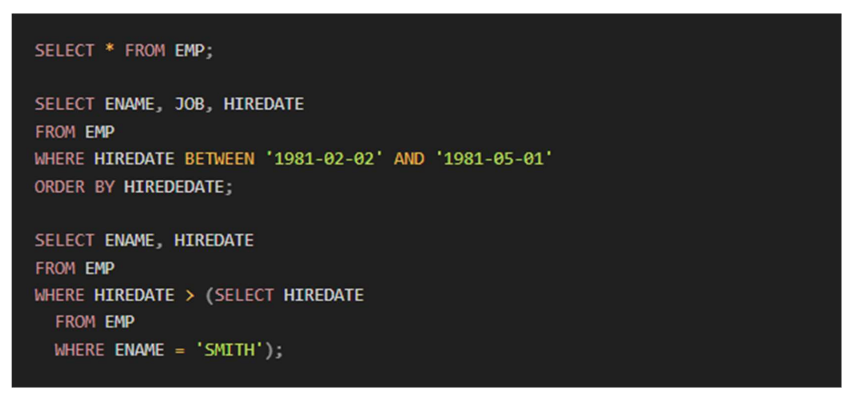 1. EMP라는 테이블에서 이름, 직업, 고용일을 뽑아낸 다음 저 3달 간만 추리고 고용일을 기준으로 정렬해라.