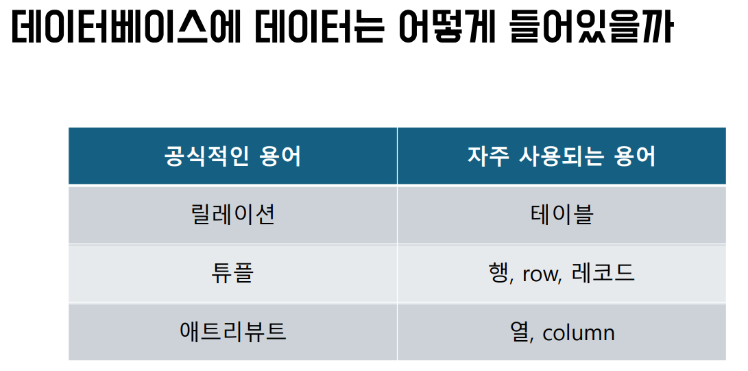 데이터베이스가 오래 된 개념이라 지칭도 많음.