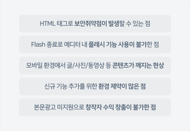 그래서 html 모드를 제공하지 않는건가? 어떤 취약점 때문에? 그럼 다른 블로그 서비스는 왜 제공하는 거지? 네이버 환경이랑 관련 있나?
