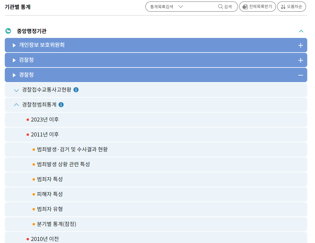 여기 부처별 지표에 더 있긴 한데 내 거에 해당하는 데이터인지는...?
