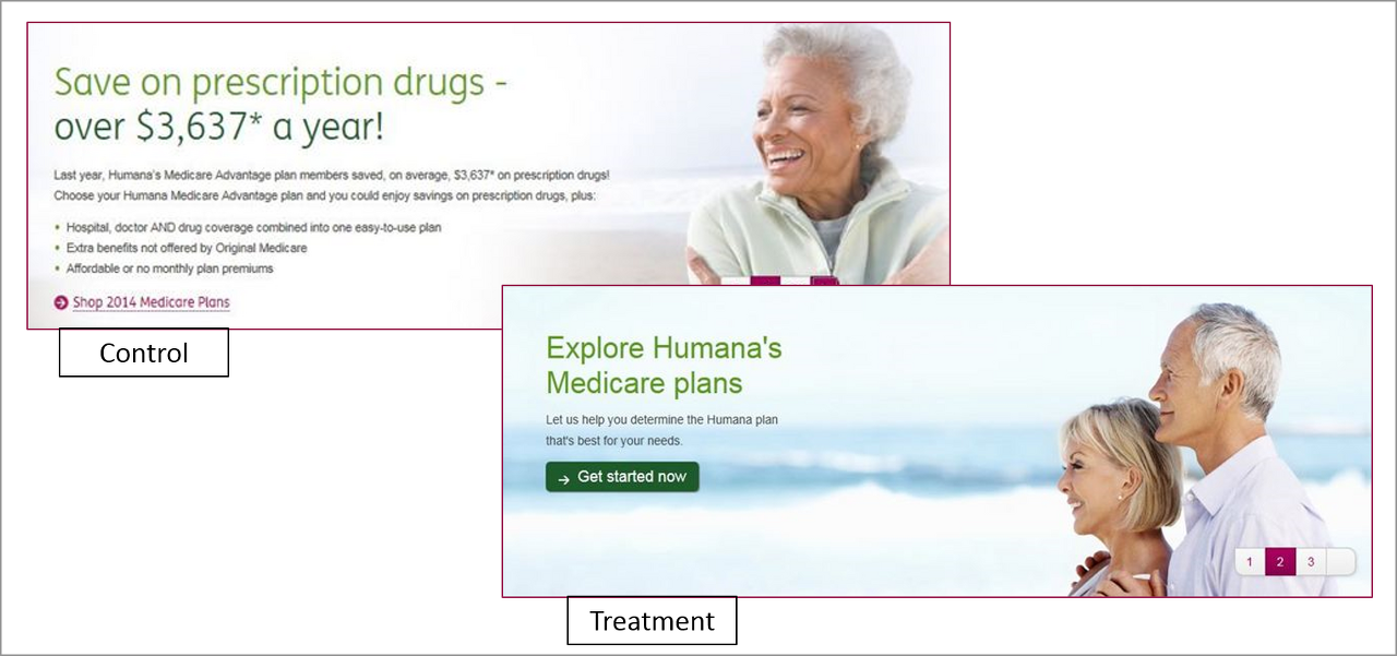 고객이 간단하고 명확한 CTA에 반응한다는 인사이트를 얻은 Humana는 CTA를 "Shop Medicare Plans"에서 "Get Started Now"로 변경하였다. 두번째 배너(B안, Treatment)는 무엇을 기대하고 어떻게 할 수 있는지, 그 메시지를 명확하게 전달하는데 충분한 효과가 있었다.